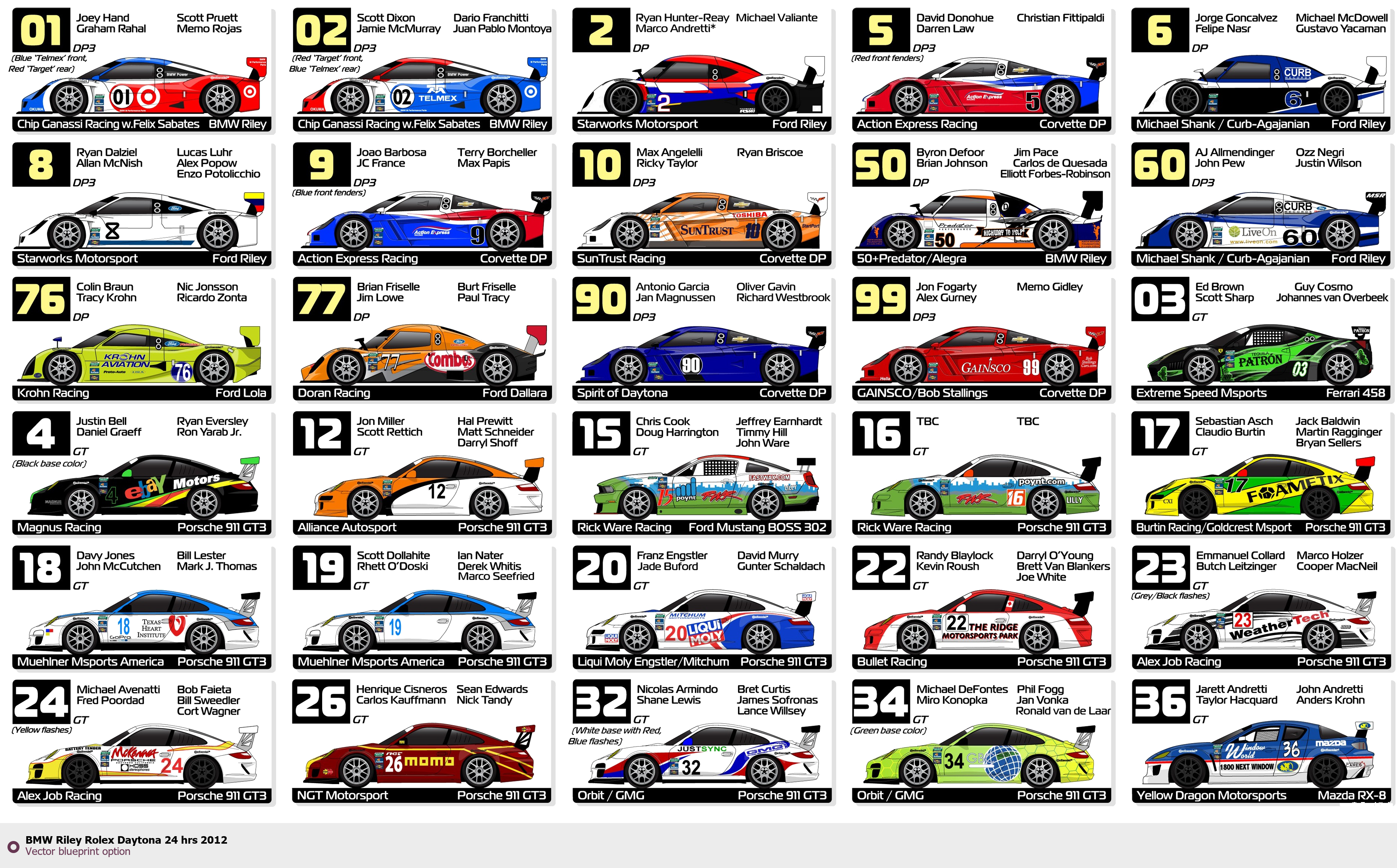 Raster blueprint of the 2012 BMW Riley Rolex Daytona 24 hrs Tag. This free downloadable image can be used for graphic projects, digital design, and 3D modeling. The file provides accurate exterior proportions of the vehicle. Model year: 2012. Body type: Tag.