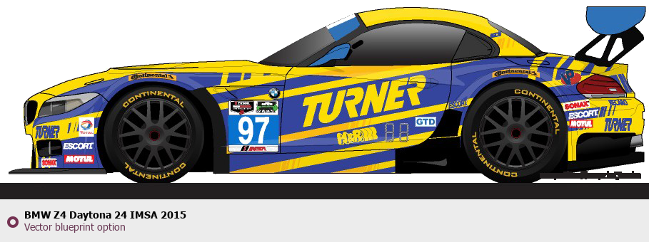 Raster blueprint of the 2015 BMW Z4 Daytona 24 IMSA Tag. This free downloadable image can be used for graphic projects, digital design, and 3D modeling. The file provides accurate exterior proportions of the vehicle. Model year: 2015. Body type: Tag.