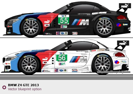 Raster blueprint of the 2013 BMW Z4 GTE Tag. This free downloadable image can be used for graphic projects, digital design, and 3D modeling. The file provides accurate exterior proportions of the vehicle. Model year: 2013. Body type: Tag.