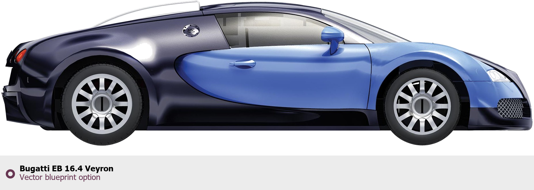 Raster blueprint of the Bugatti EB 16.4 Veyron Coupe. This free downloadable image can be used for graphic projects, digital design, and 3D modeling. The file provides accurate exterior proportions of the vehicle. Body type: Coupe.