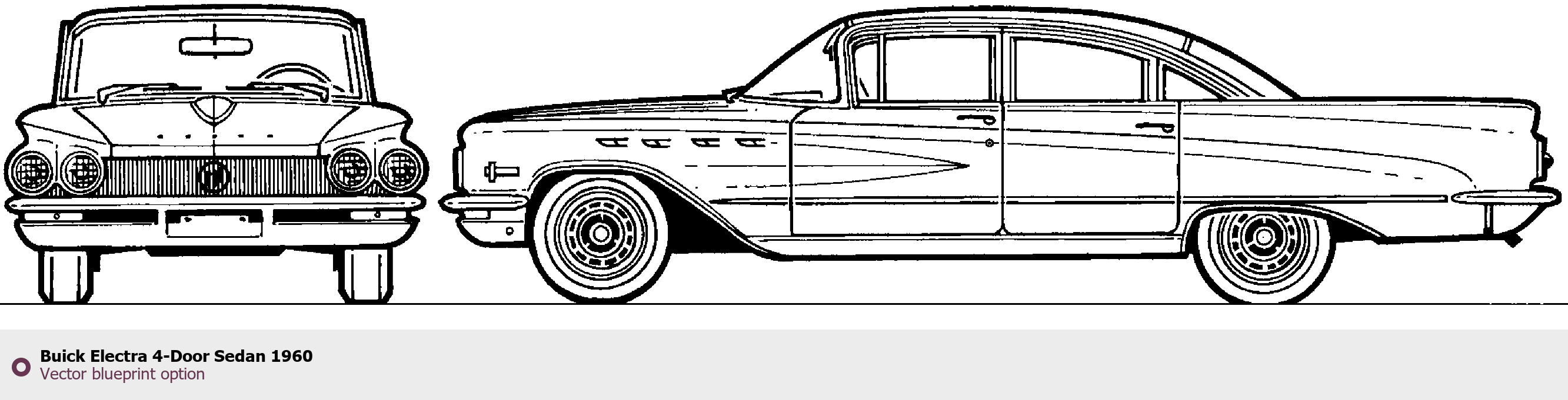 Raster blueprint of the 1960 Buick Electra 4-Door Sedan Sedan. This free downloadable image can be used for graphic projects, digital design, and 3D modeling. The file provides accurate exterior proportions of the vehicle. Model year: 1960. Body type: Sedan.