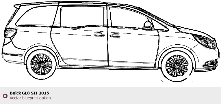 Raster blueprint of the 2015 Buick GL8 SII Minivan. This free downloadable image can be used for graphic projects, digital design, and 3D modeling. The file provides accurate exterior proportions of the vehicle. Model year: 2015. Body type: Minivan.
