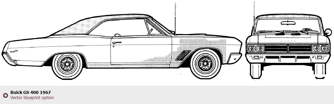 Raster blueprint of the 1967 Buick GS 400 Tag. This free downloadable image can be used for graphic projects, digital design, and 3D modeling. The file provides accurate exterior proportions of the vehicle. Model year: 1967. Body type: Tag.