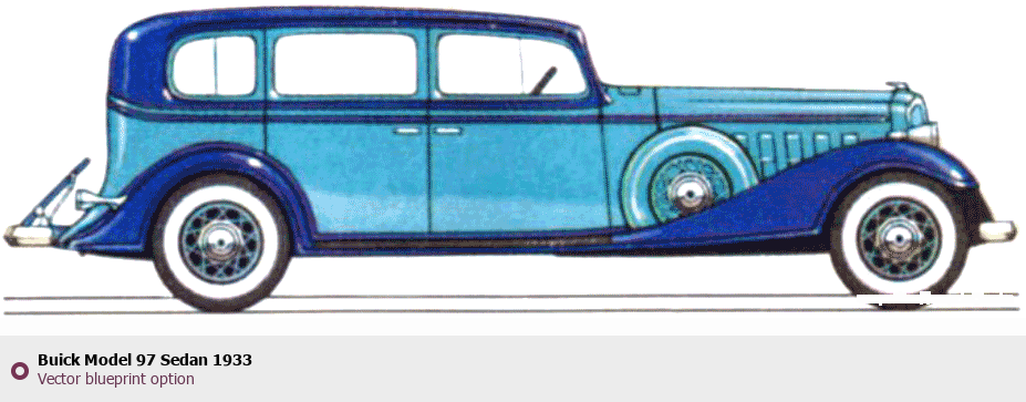 Raster blueprint of the 1933 Buick Model 97 Sedan Sedan. This free downloadable image can be used for graphic projects, digital design, and 3D modeling. The file provides accurate exterior proportions of the vehicle. Model year: 1933. Body type: Sedan.