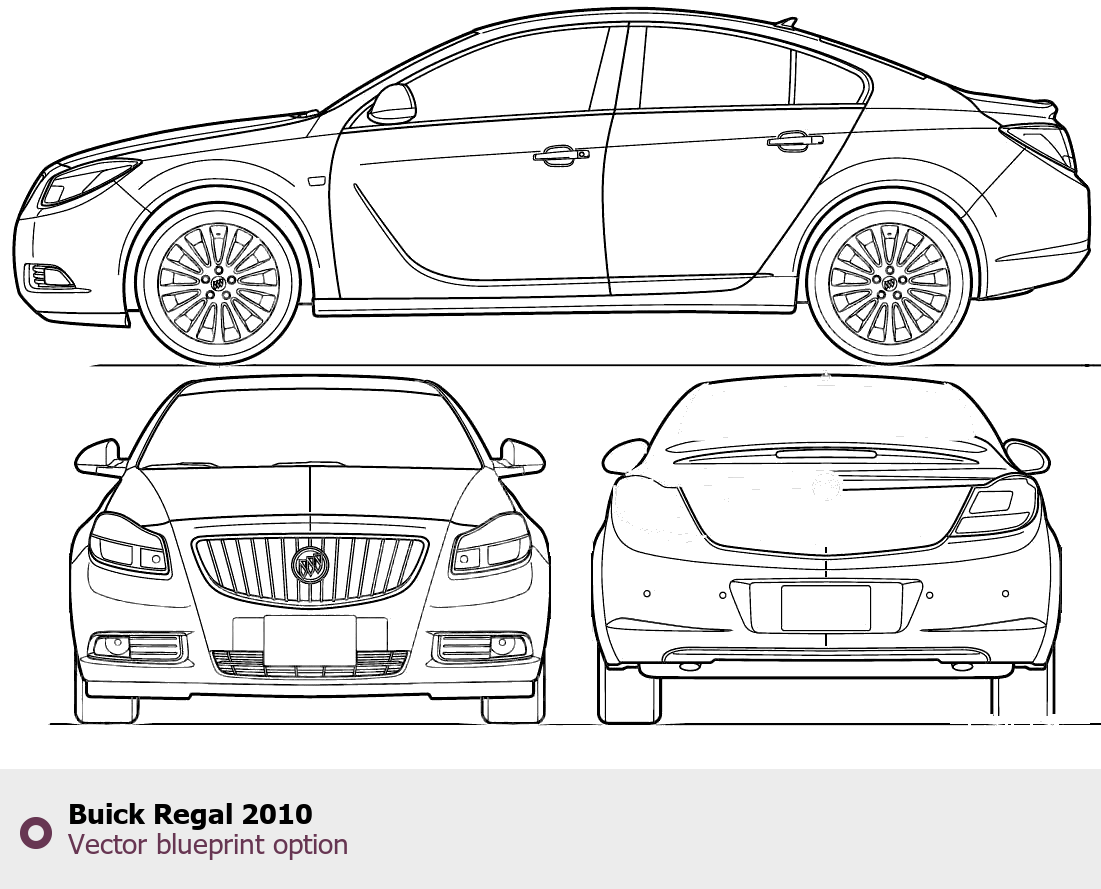 Raster blueprint of the 2010 Buick Regal Tag. This free downloadable image can be used for graphic projects, digital design, and 3D modeling. The file provides accurate exterior proportions of the vehicle. Model year: 2010. Body type: Tag.