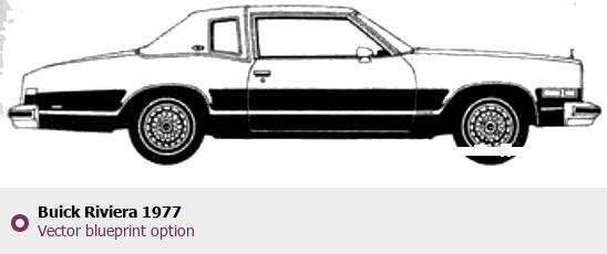Raster blueprint of the 1977 Buick Riviera Coupe. This free downloadable image can be used for graphic projects, digital design, and 3D modeling. The file provides accurate exterior proportions of the vehicle. Model year: 1977. Body type: Coupe.