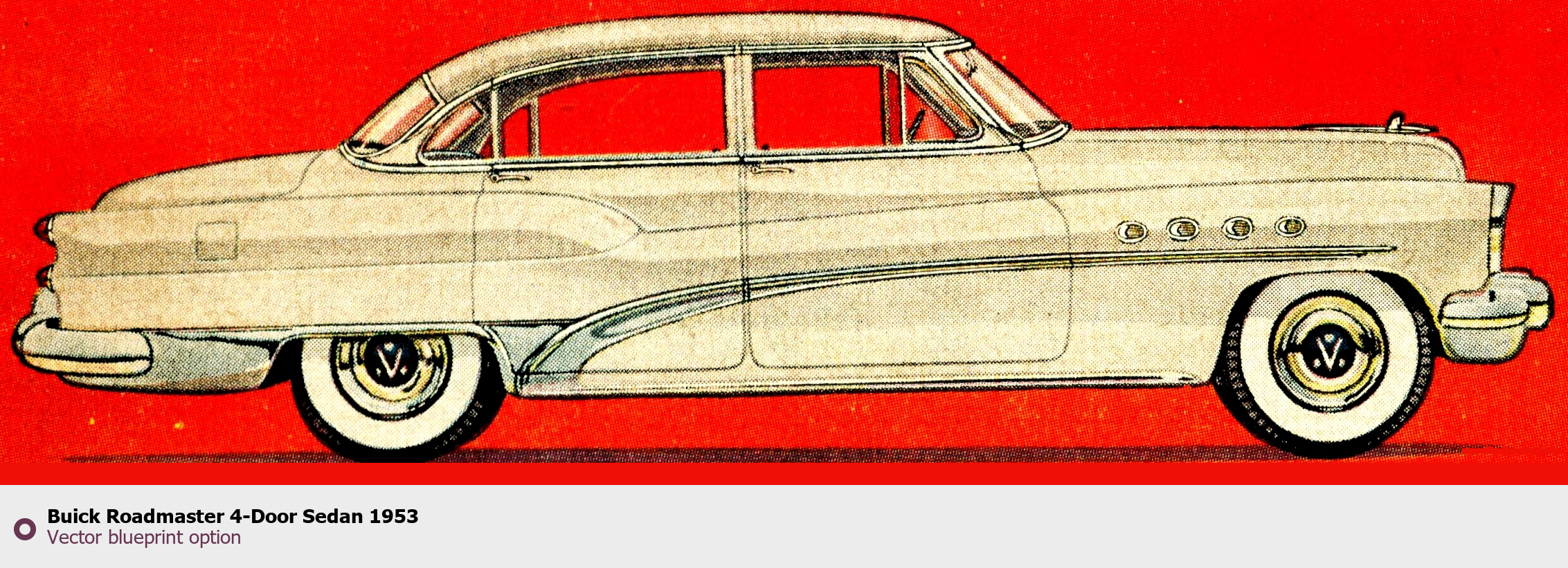 Raster blueprint of the 1953 Buick Roadmaster 4-Door Sedan Sedan. This free downloadable image can be used for graphic projects, digital design, and 3D modeling. The file provides accurate exterior proportions of the vehicle. Model year: 1953. Body type: Sedan.