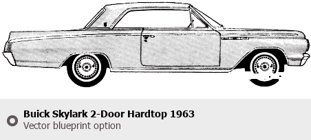 Raster blueprint of the 1963 Buick Skylark 2-Door Hardtop Tag. This free downloadable image can be used for graphic projects, digital design, and 3D modeling. The file provides accurate exterior proportions of the vehicle. Model year: 1963. Body type: Tag.