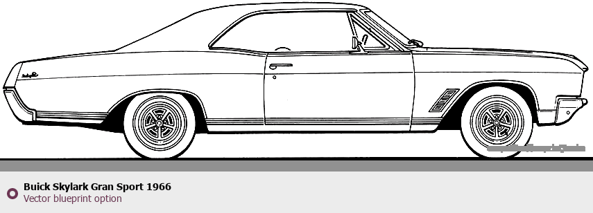 Raster blueprint of the 1966 Buick Skylark Gran Sport Tag. This free downloadable image can be used for graphic projects, digital design, and 3D modeling. The file provides accurate exterior proportions of the vehicle. Model year: 1966. Body type: Tag.
