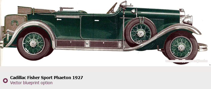 Raster blueprint of the 1927 Cadillac Fisher Sport Phaeton Phaeton. This free downloadable image can be used for graphic projects, digital design, and 3D modeling. The file provides accurate exterior proportions of the vehicle. Model year: 1927. Body type: Phaeton.