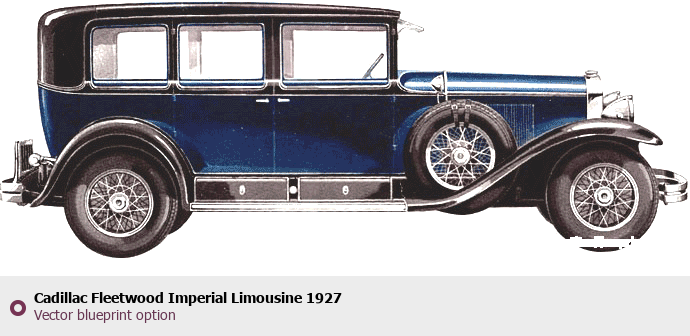 Raster blueprint of the 1927 Cadillac Fleetwood Imperial Limousine Limousine. This free downloadable image can be used for graphic projects, digital design, and 3D modeling. The file provides accurate exterior proportions of the vehicle. Model year: 1927. Body type: Limousine.