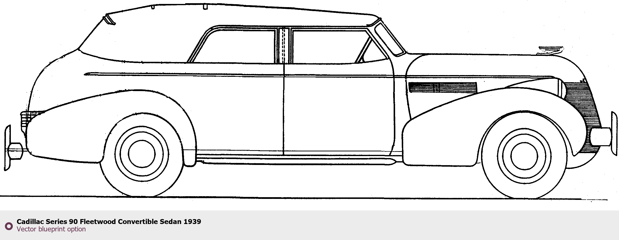 Raster blueprint of the 1939 Cadillac Series 90 Fleetwood Convertible Sedan Sedan. This free downloadable image can be used for graphic projects, digital design, and 3D modeling. The file provides accurate exterior proportions of the vehicle. Model year: 1939. Body type: Sedan.