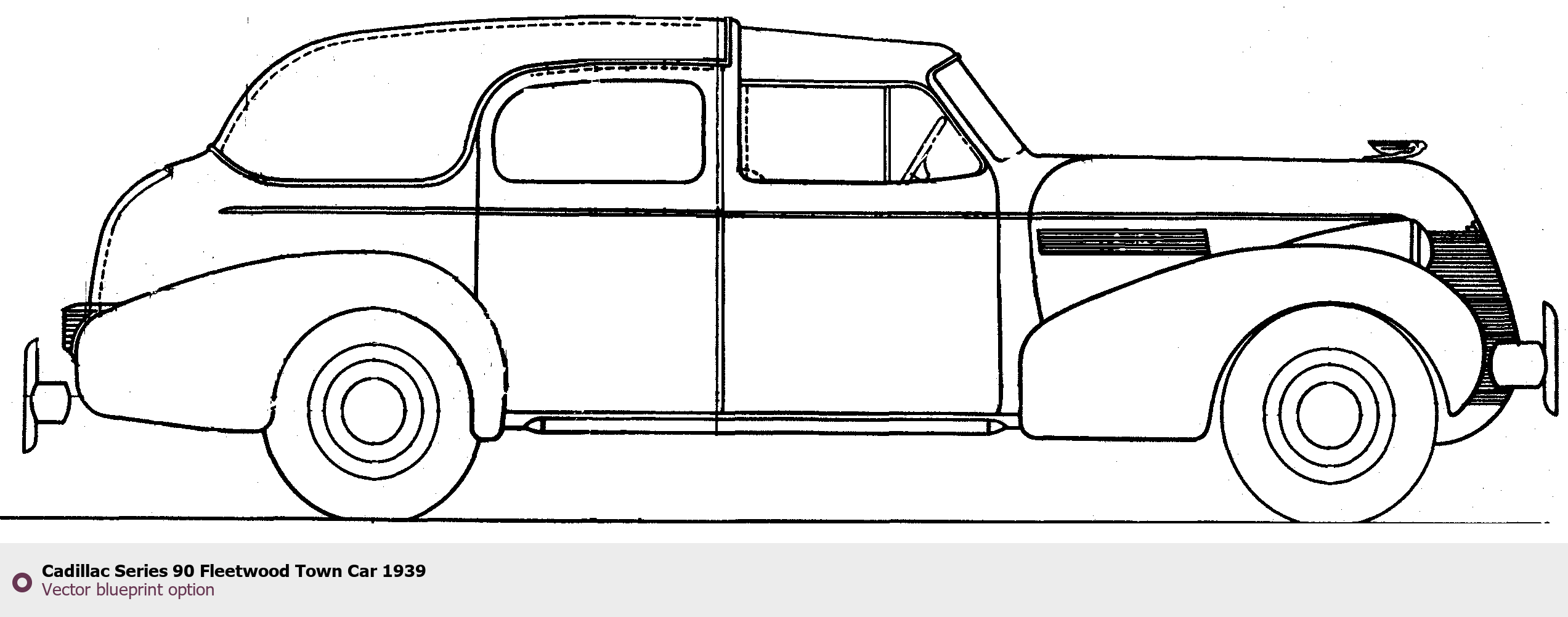 Raster blueprint of the 1939 Cadillac Series 90 Fleetwood Town Car Tag. This free downloadable image can be used for graphic projects, digital design, and 3D modeling. The file provides accurate exterior proportions of the vehicle. Model year: 1939. Body type: Tag.