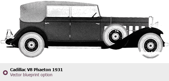Raster blueprint of the 1931 Cadillac V8 Phaeton Phaeton. This free downloadable image can be used for graphic projects, digital design, and 3D modeling. The file provides accurate exterior proportions of the vehicle. Model year: 1931. Body type: Phaeton.
