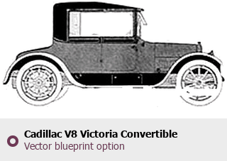Raster blueprint of the 1916 Cadillac V8 Victoria Convertible Cabriolet. This free downloadable image can be used for graphic projects, digital design, and 3D modeling. The file provides accurate exterior proportions of the vehicle. Model year: 1916. Body type: Cabriolet.