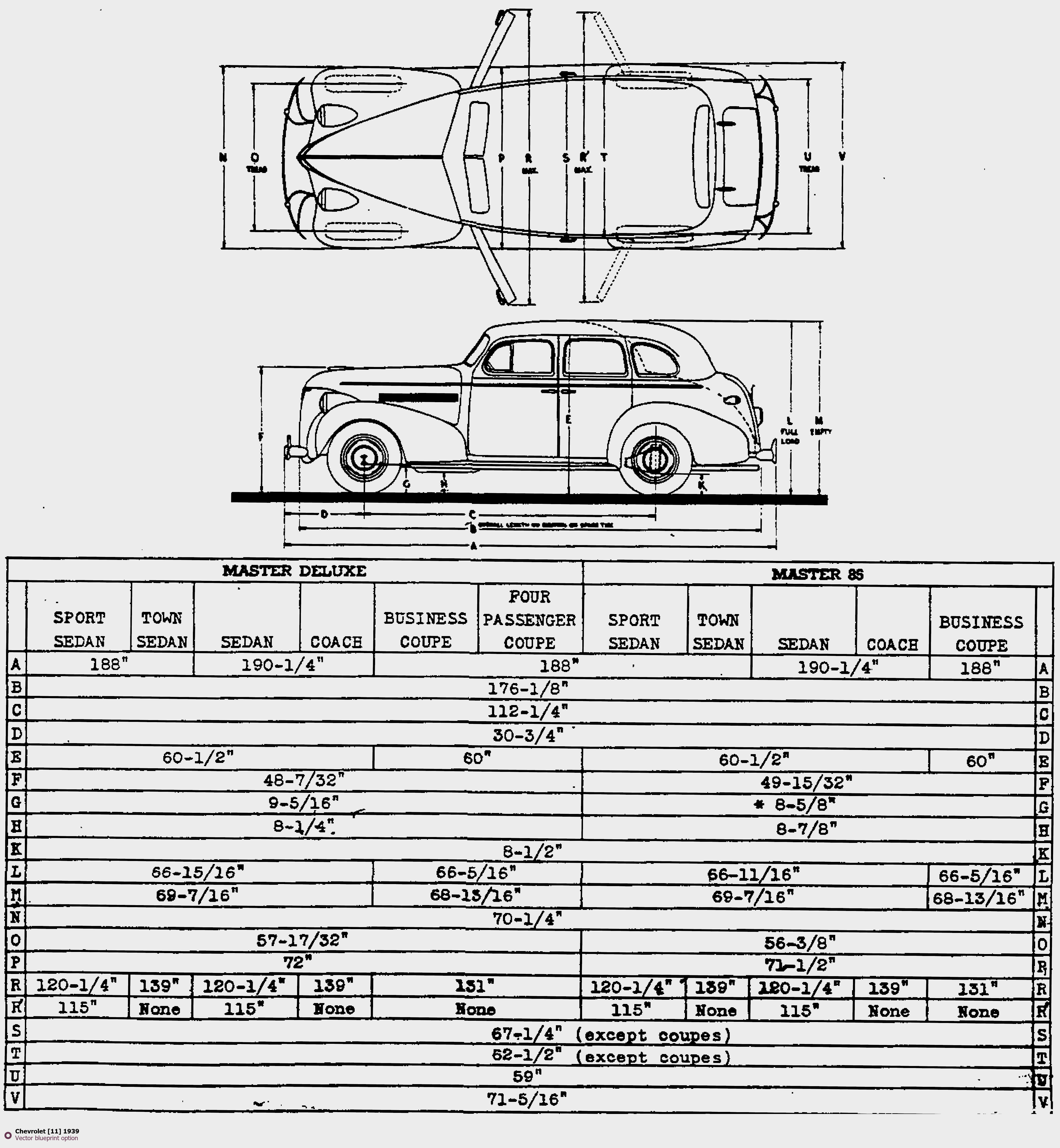 Raster blueprint of the 1939 Chevrolet [11] Tag. This free downloadable image can be used for graphic projects, digital design, and 3D modeling. The file provides accurate exterior proportions of the vehicle. Model year: 1939. Body type: Tag.