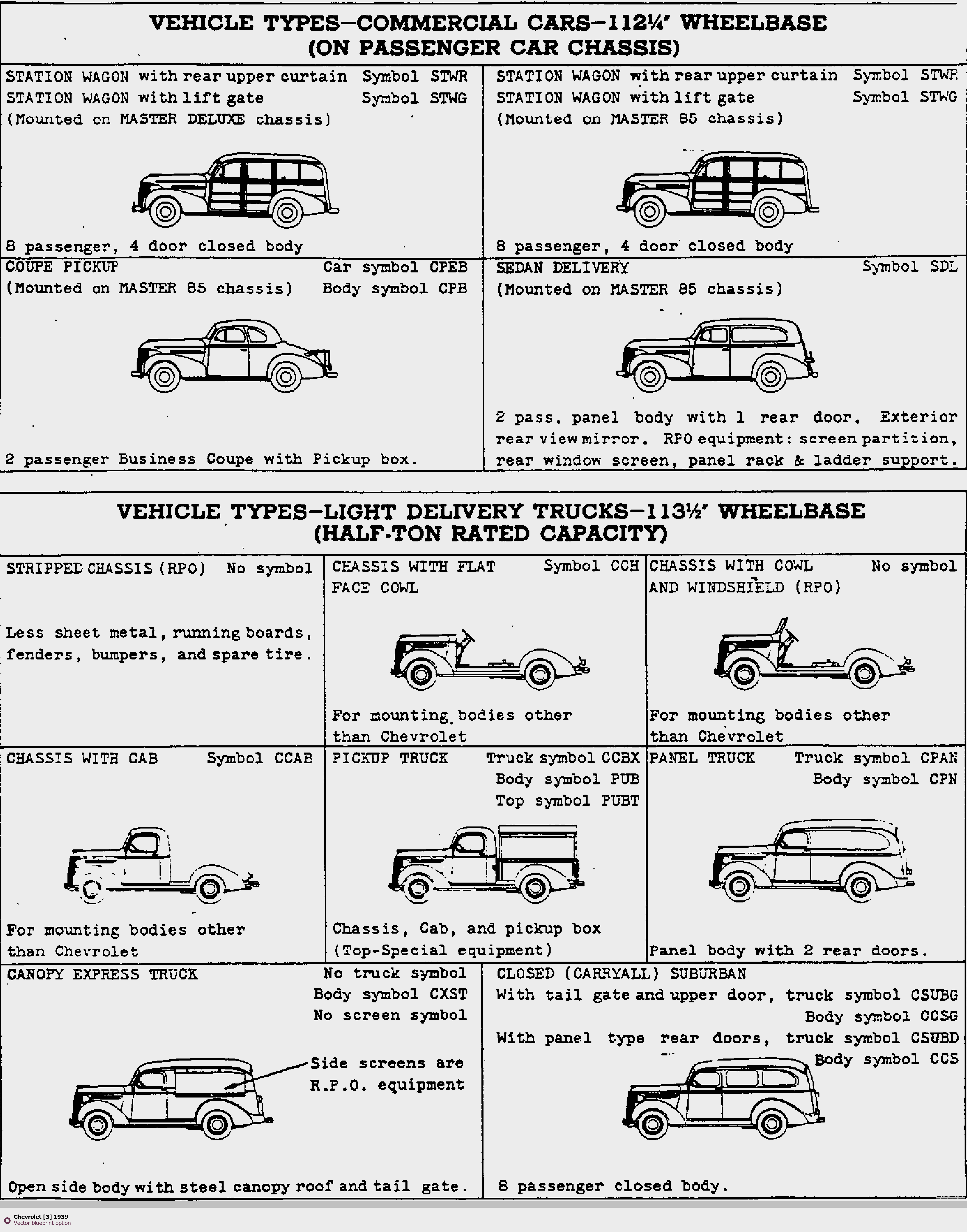 Raster blueprint of the 1939 Chevrolet [3] Tag. This free downloadable image can be used for graphic projects, digital design, and 3D modeling. The file provides accurate exterior proportions of the vehicle. Model year: 1939. Body type: Tag.