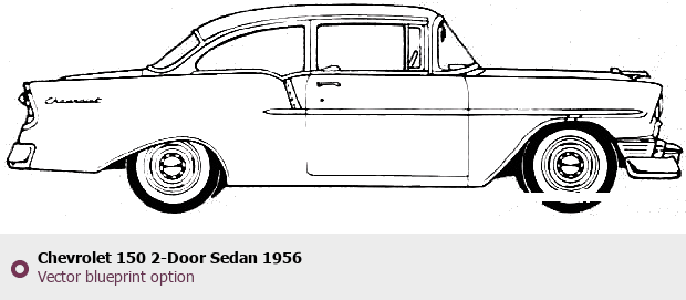Raster blueprint of the 1956 Chevrolet 150 2-Door Sedan Sedan. This free downloadable image can be used for graphic projects, digital design, and 3D modeling. The file provides accurate exterior proportions of the vehicle. Model year: 1956. Body type: Sedan.