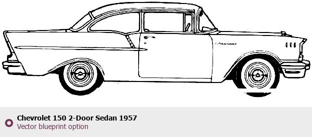 Raster blueprint of the 1957 Chevrolet 150 2-Door Sedan Sedan. This free downloadable image can be used for graphic projects, digital design, and 3D modeling. The file provides accurate exterior proportions of the vehicle. Model year: 1957. Body type: Sedan.