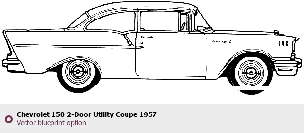 Raster blueprint of the 1957 Chevrolet 150 2-Door Utility Coupe Sedan. This free downloadable image can be used for graphic projects, digital design, and 3D modeling. The file provides accurate exterior proportions of the vehicle. Model year: 1957. Body type: Sedan.