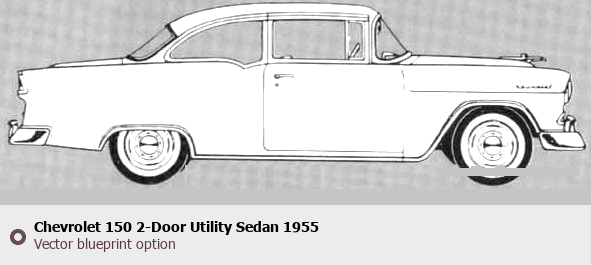 Raster blueprint of the 1955 Chevrolet 150 2-Door Utility Sedan Sedan. This free downloadable image can be used for graphic projects, digital design, and 3D modeling. The file provides accurate exterior proportions of the vehicle. Model year: 1955. Body type: Sedan.