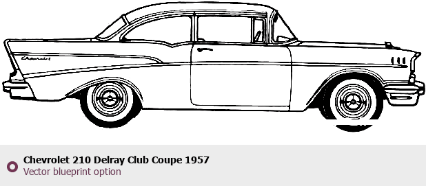 Raster blueprint of the 1957 Chevrolet 210 Delray Club Coupe Sedan. This free downloadable image can be used for graphic projects, digital design, and 3D modeling. The file provides accurate exterior proportions of the vehicle. Model year: 1957. Body type: Sedan.