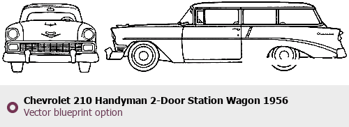 Raster blueprint of the 1956 Chevrolet 210 Handyman 2-Door Station Wagon Sedan. This free downloadable image can be used for graphic projects, digital design, and 3D modeling. The file provides accurate exterior proportions of the vehicle. Model year: 1956. Body type: Sedan.