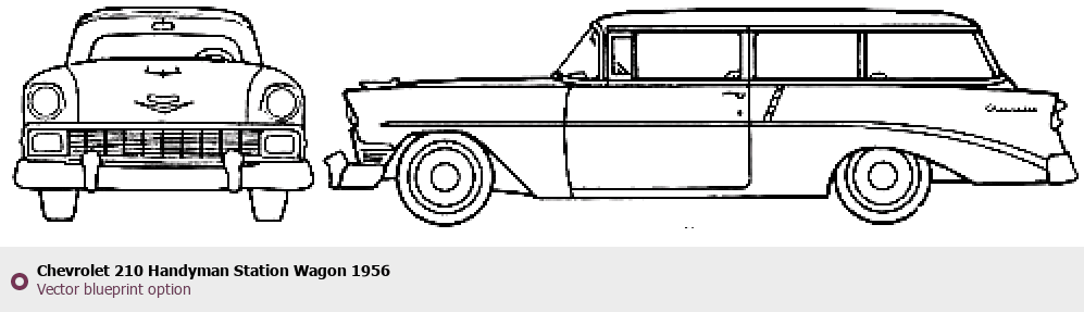 Raster blueprint of the 1956 Chevrolet 210 Handyman Station Wagon Sedan. This free downloadable image can be used for graphic projects, digital design, and 3D modeling. The file provides accurate exterior proportions of the vehicle. Model year: 1956. Body type: Sedan.
