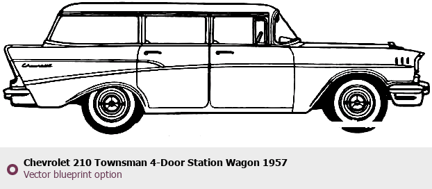 Raster blueprint of the 1957 Chevrolet 210 Townsman 4-Door Station Wagon Sedan. This free downloadable image can be used for graphic projects, digital design, and 3D modeling. The file provides accurate exterior proportions of the vehicle. Model year: 1957. Body type: Sedan.