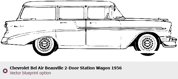 Raster blueprint of the 1956 Chevrolet Bel Air Beauville 2-Door Station Wagon Wagon. This free downloadable image can be used for graphic projects, digital design, and 3D modeling. The file provides accurate exterior proportions of the vehicle. Model year: 1956. Body type: Wagon.