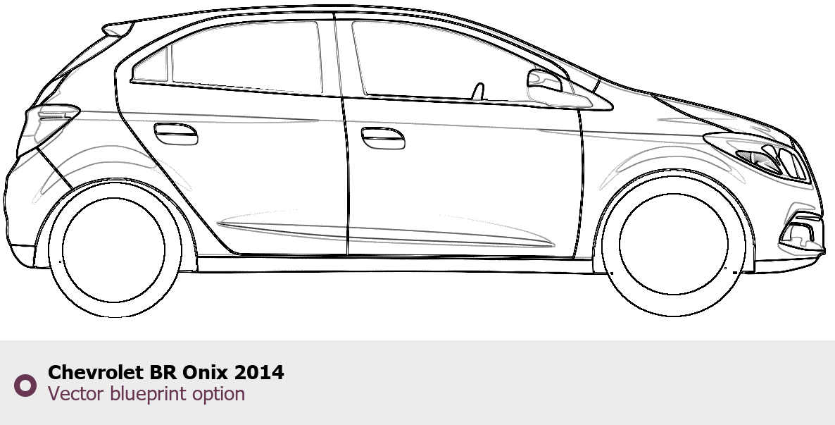 Raster blueprint of the 2014 Chevrolet BR Onix Tag. This free downloadable image can be used for graphic projects, digital design, and 3D modeling. The file provides accurate exterior proportions of the vehicle. Model year: 2014. Body type: Tag.