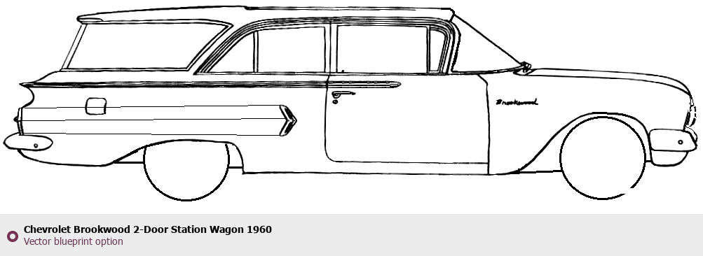 Raster blueprint of the 1960 Chevrolet Brookwood 2-Door Station Wagon Wagon. This free downloadable image can be used for graphic projects, digital design, and 3D modeling. The file provides accurate exterior proportions of the vehicle. Model year: 1960. Body type: Wagon.