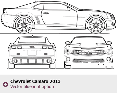 Raster blueprint of the 2013 Chevrolet Camaro Tag. This free downloadable image can be used for graphic projects, digital design, and 3D modeling. The file provides accurate exterior proportions of the vehicle. Model year: 2013. Body type: Tag.