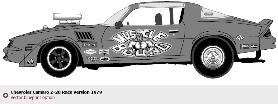 Raster blueprint of the 1979 Chevrolet Camaro Z-28 Race Version Tag. This free downloadable image can be used for graphic projects, digital design, and 3D modeling. The file provides accurate exterior proportions of the vehicle. Model year: 1979. Body type: Tag.