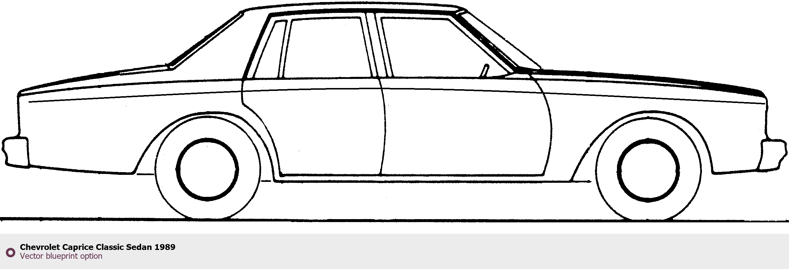 Raster blueprint of the 1989 Chevrolet Caprice Classic Sedan Sedan. This free downloadable image can be used for graphic projects, digital design, and 3D modeling. The file provides accurate exterior proportions of the vehicle. Model year: 1989. Body type: Sedan.