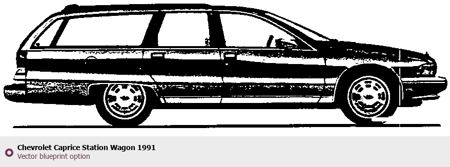 Raster blueprint of the 1991 Chevrolet Caprice Station Wagon Wagon. This free downloadable image can be used for graphic projects, digital design, and 3D modeling. The file provides accurate exterior proportions of the vehicle. Model year: 1991. Body type: Wagon.