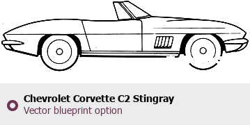 Raster blueprint of the 1964 Chevrolet Corvette C2 Stingray Convertible Cabriolet. This free downloadable image can be used for graphic projects, digital design, and 3D modeling. The file provides accurate exterior proportions of the vehicle. Model year: 1964. Body type: Cabriolet.