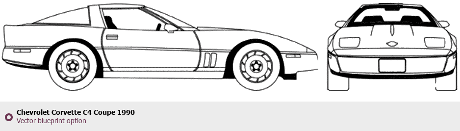 Raster blueprint of the 1990 Chevrolet Corvette C4 Coupe Coupe. This free downloadable image can be used for graphic projects, digital design, and 3D modeling. The file provides accurate exterior proportions of the vehicle. Model year: 1990. Body type: Coupe.