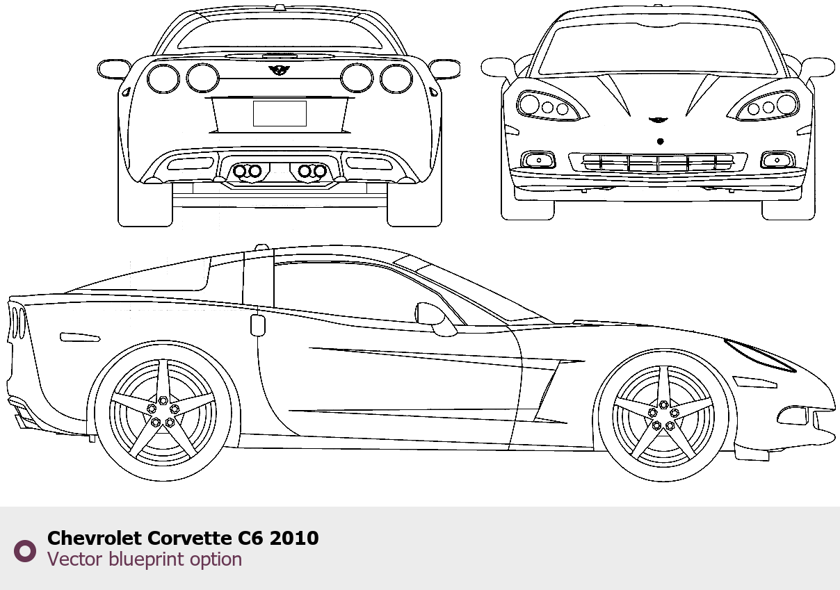 Raster blueprint of the 2010 Chevrolet Corvette C6 Tag. This free downloadable image can be used for graphic projects, digital design, and 3D modeling. The file provides accurate exterior proportions of the vehicle. Model year: 2010. Body type: Tag.