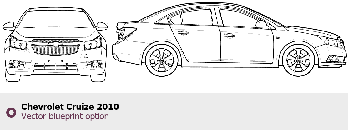 Raster blueprint of the 2010 Chevrolet Cruize Tag. This free downloadable image can be used for graphic projects, digital design, and 3D modeling. The file provides accurate exterior proportions of the vehicle. Model year: 2010. Body type: Tag.