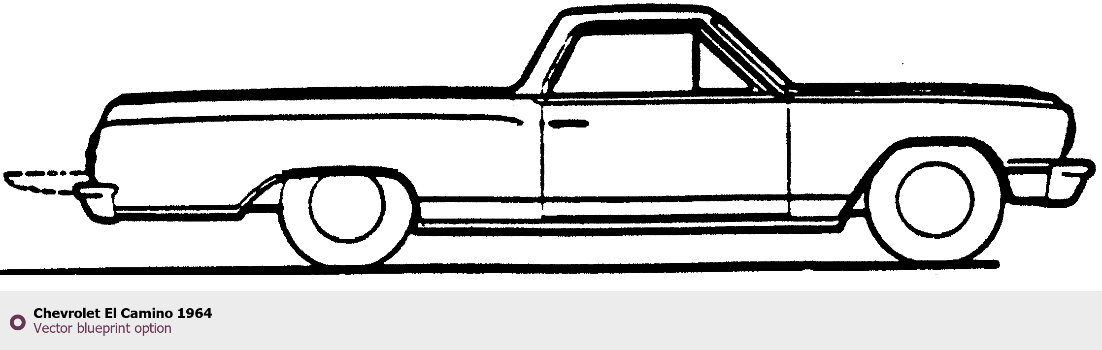 Raster blueprint of the 1964 Chevrolet El Camino Tag. This free downloadable image can be used for graphic projects, digital design, and 3D modeling. The file provides accurate exterior proportions of the vehicle. Model year: 1964. Body type: Tag.