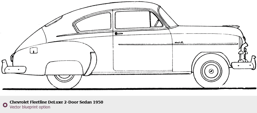 Raster blueprint of the 1950 Chevrolet Fleetline DeLuxe 2-Door Sedan Sedan. This free downloadable image can be used for graphic projects, digital design, and 3D modeling. The file provides accurate exterior proportions of the vehicle. Model year: 1950. Body type: Sedan.