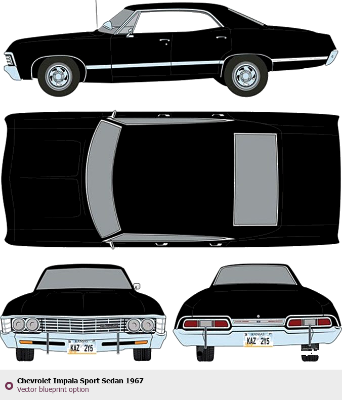 Raster blueprint of the 1967 Chevrolet Impala Sport Sedan Sedan. This free downloadable image can be used for graphic projects, digital design, and 3D modeling. The file provides accurate exterior proportions of the vehicle. Model year: 1967. Body type: Sedan.