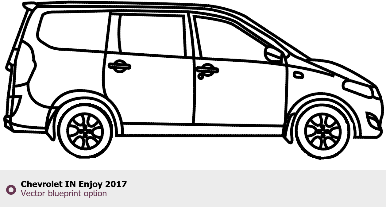 Raster blueprint of the 2017 Chevrolet IN Enjoy Tag. This free downloadable image can be used for graphic projects, digital design, and 3D modeling. The file provides accurate exterior proportions of the vehicle. Model year: 2017. Body type: Tag.