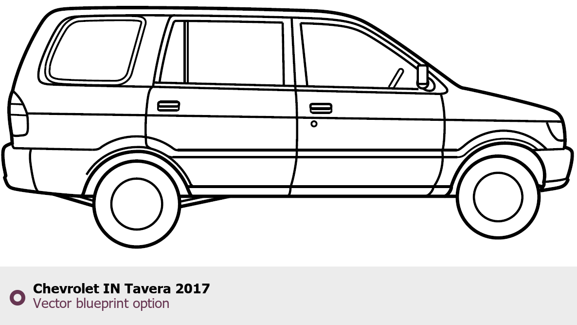 Raster blueprint of the 2017 Chevrolet IN Tavera SUV. This free downloadable image can be used for graphic projects, digital design, and 3D modeling. The file provides accurate exterior proportions of the vehicle. Model year: 2017. Body type: SUV.