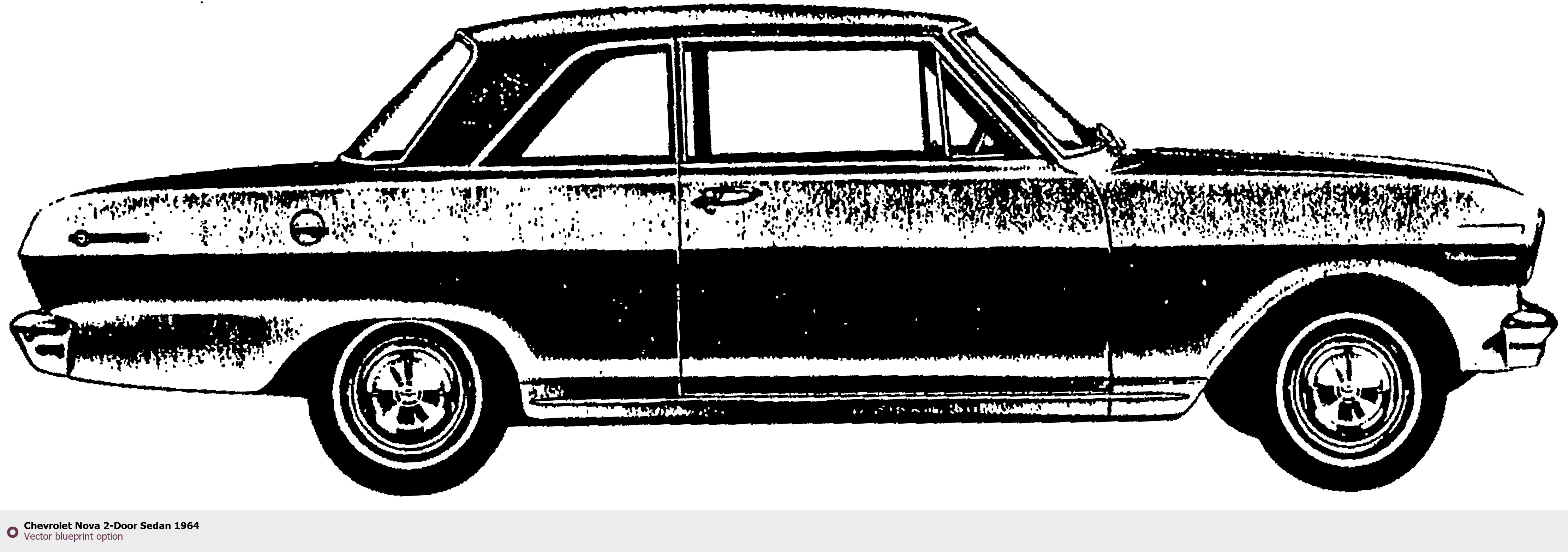Raster blueprint of the 1964 Chevrolet Nova 2-Door Sedan Coupe. This free downloadable image can be used for graphic projects, digital design, and 3D modeling. The file provides accurate exterior proportions of the vehicle. Model year: 1964. Body type: Coupe.