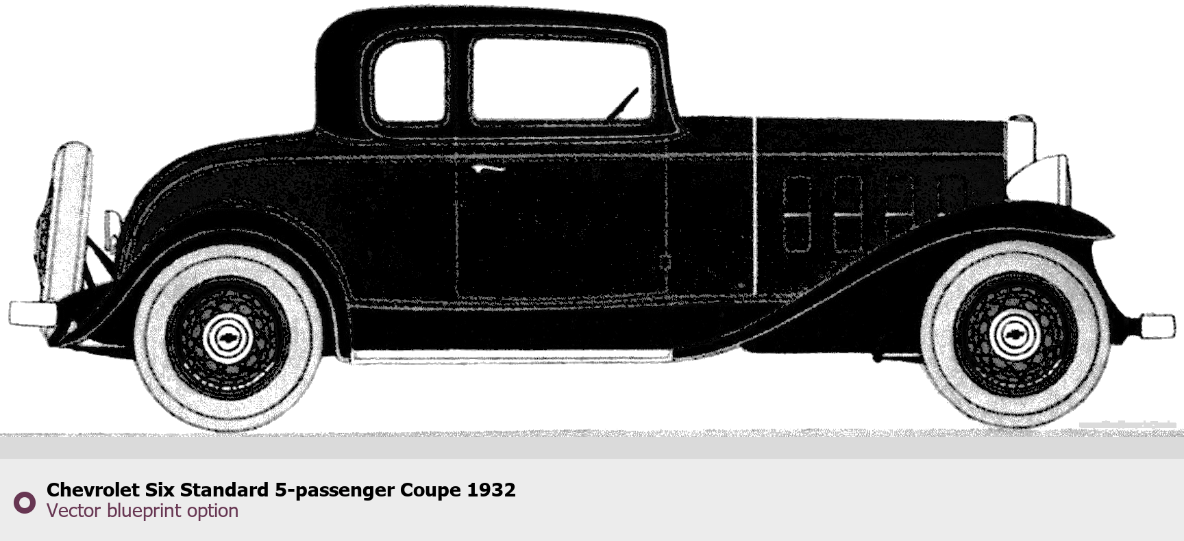 Raster blueprint of the 1932 Chevrolet Six Standard 5-passenger Coupe Wagon. This free downloadable image can be used for graphic projects, digital design, and 3D modeling. The file provides accurate exterior proportions of the vehicle. Model year: 1932. Body type: Wagon.