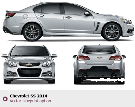 Raster blueprint of the 2014 Chevrolet SS Sedan. This free downloadable image can be used for graphic projects, digital design, and 3D modeling. The file provides accurate exterior proportions of the vehicle. Model year: 2014. Body type: Sedan.