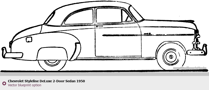 Raster blueprint of the 1950 Chevrolet Styleline DeLuxe 2-Door Sedan Sedan. This free downloadable image can be used for graphic projects, digital design, and 3D modeling. The file provides accurate exterior proportions of the vehicle. Model year: 1950. Body type: Sedan.