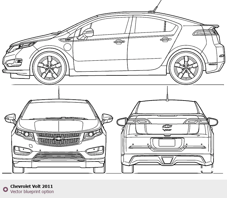 Raster blueprint of the 2011 Chevrolet Volt Hatchback. This free downloadable image can be used for graphic projects, digital design, and 3D modeling. The file provides accurate exterior proportions of the vehicle. Model year: 2011. Body type: Hatchback.